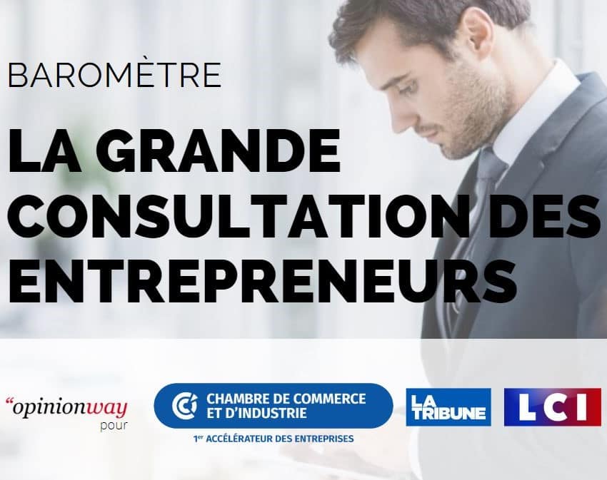 Résultats de la grande consultation des entrepreneurs du mois de mars, sondage réalisé par OpinionWay pour CCI France, La Tribune et LCI.